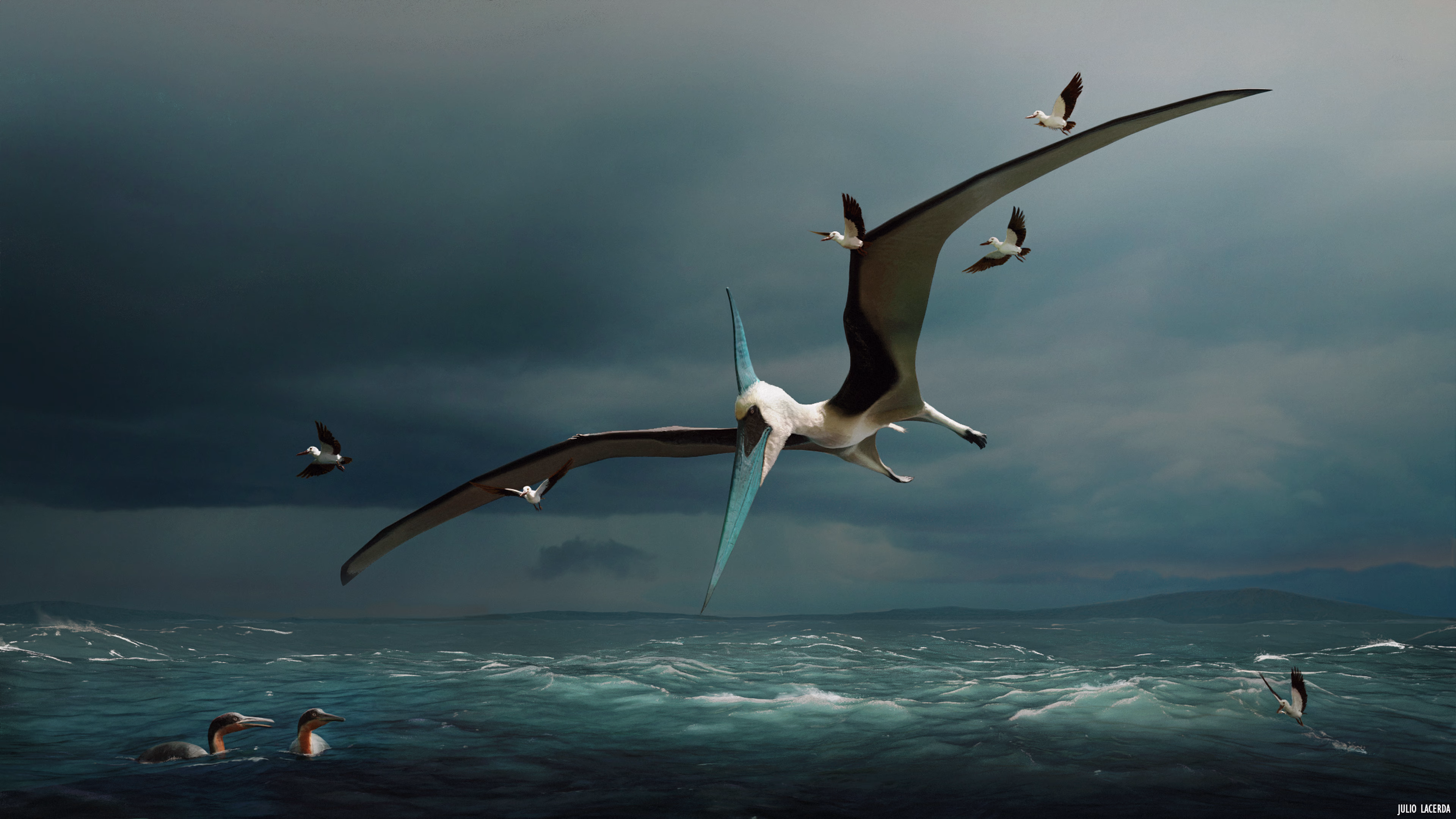 Both illustrator and graphic designer, Julio Lacerda got into paleoart at the age of 17. Wishing to bridge the creativity of reconstructing prehistoric animals and the essence of wildlife documentaries, he seeks to represent dinosaurs and other prehistoric animals as complex and realistic living beings in both appearance and behavior, being protagonists of casual scenes. His work has been published and shown at several countries like Japan (Pterosaurs exhibition, Fukui Prefectural Dinosaur Museum), United Kingdom (All Your Yesterdays by Irregular Books), USA (official publication of Siats meekerorum, North Carolina Museum of Natural Sciences) as well as his home country, Brazil.
